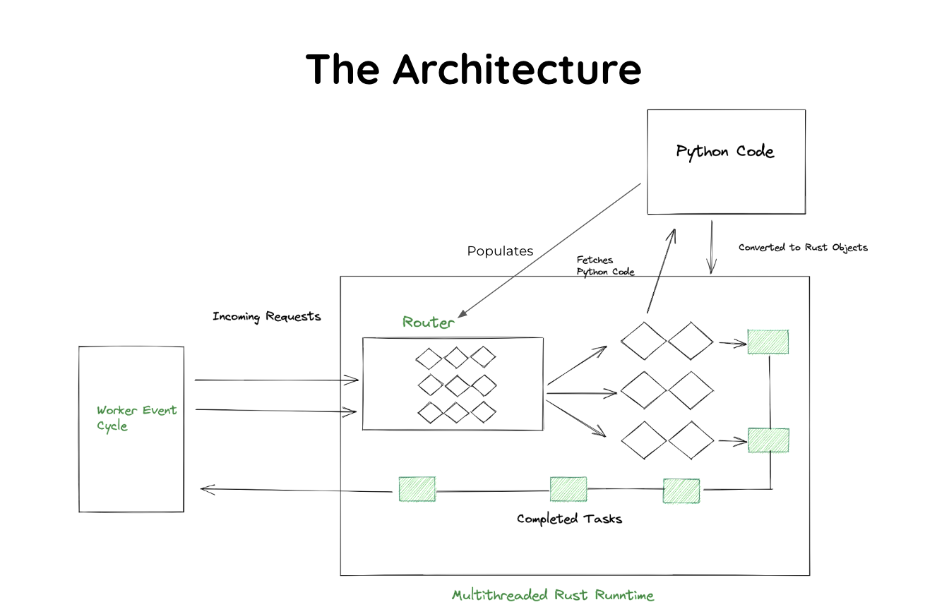 Robyn's unique architecture combines Python's ease of development with Rust's performance. This hybrid design allows developers to write familiar Python code while benefiting from Rust's speed and memory safety.